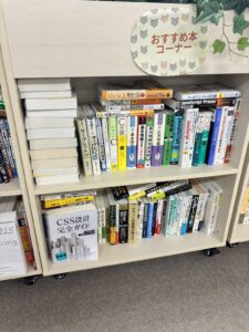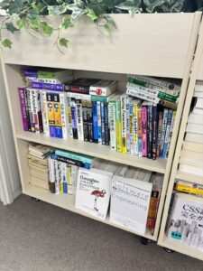 社内には、ITの基礎から実務に役立つ内容まで、幅広い書籍を揃えています。